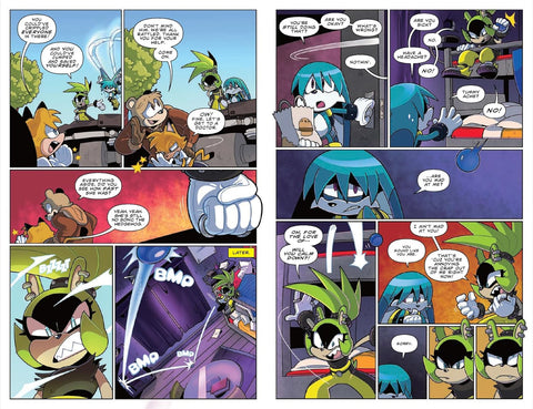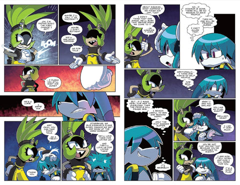 While Sonic is trying to find Clutch, Amy and Tails decide to visit towns connected to the Restoration to see how much they are impacted by its loss. The Diamond Cutters, though officially disbanded, stay together to try to rebuild Emeraldville with help from surrounding towns. Surge and Kit are also around trying to help in their own way, but their help isn’t always wanted!